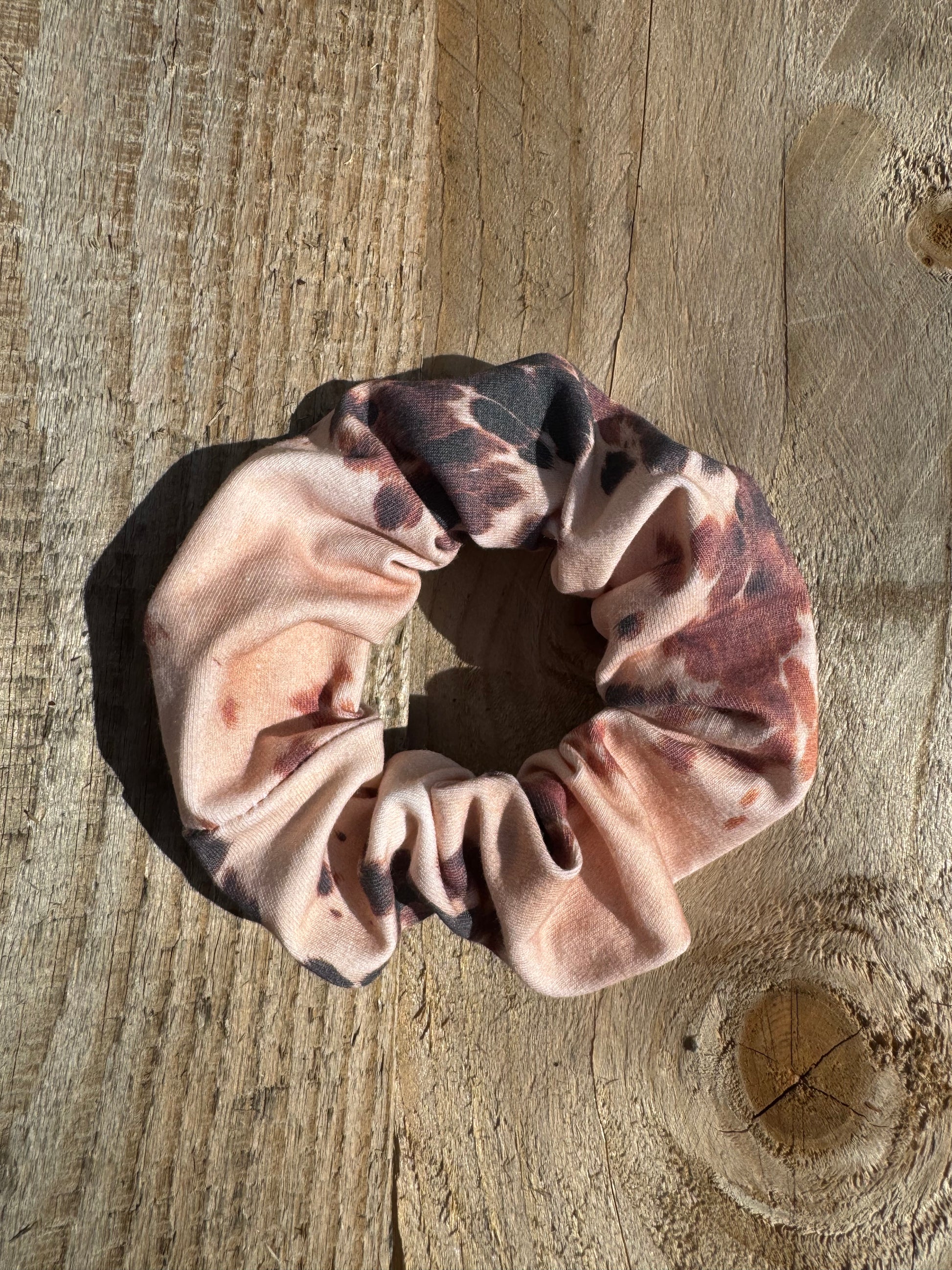 The Cow Hide scrunchie is handmade with an organic jersey fabric, features a cow hide pattern. Experience the softness and durability of this unique scrunchie while adding a touch of personality to your hair accessories. Upgrade your collection with this must-have cow hide scrunchie.
