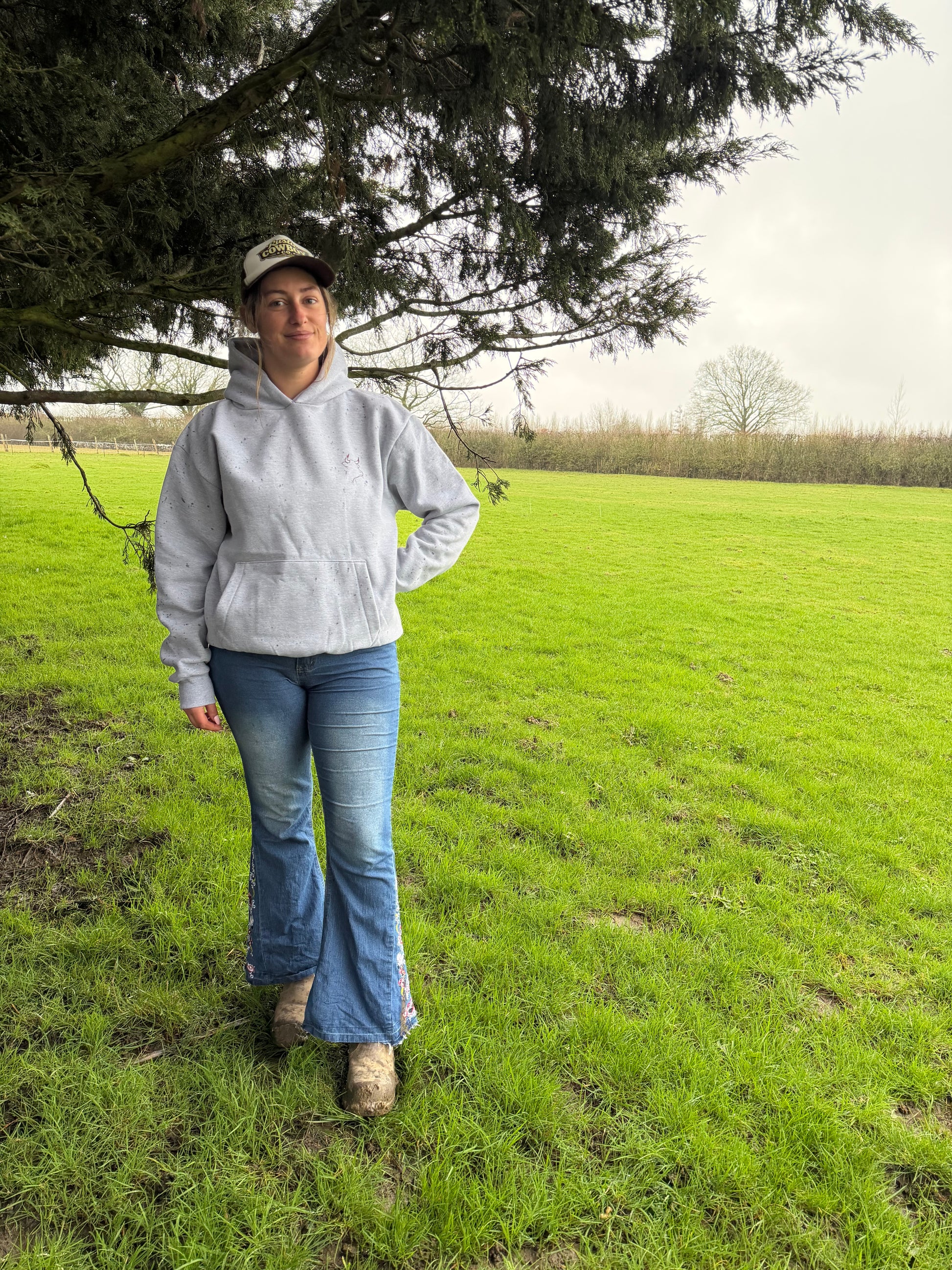 Stay warm and comfortable in our Hereford Hoodie in Grey. Made from a blend of heavyweight cotton and polyester, this oversized hoodie features a double fabric hood and a convenient kangaroo pouch. With our simple cow logo on the front in heat transfer vinyl, lasting 50+ washes.